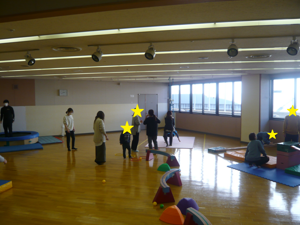 体調等でプールに入れない場合は、室内での親子療育となります。